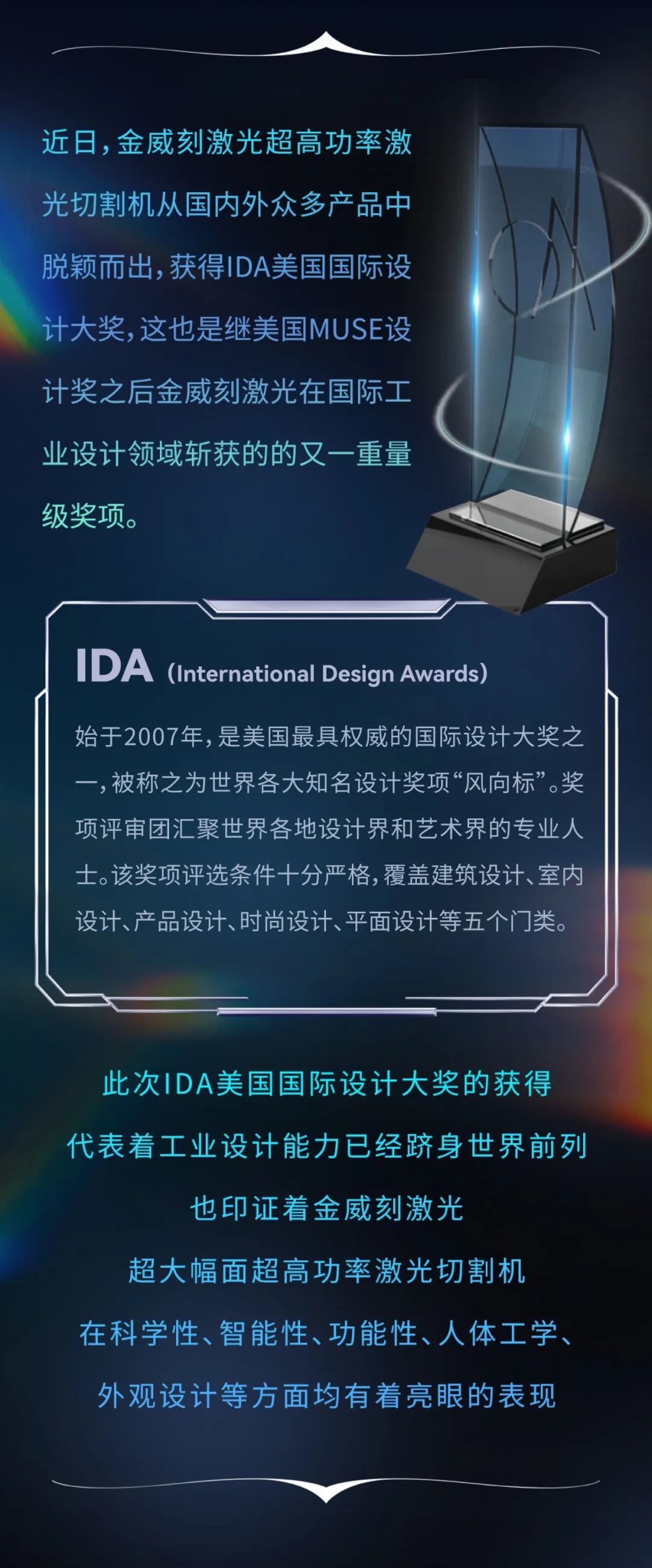 國際獎項+1|金威刻激光榮獲IDA美國國際設計大獎